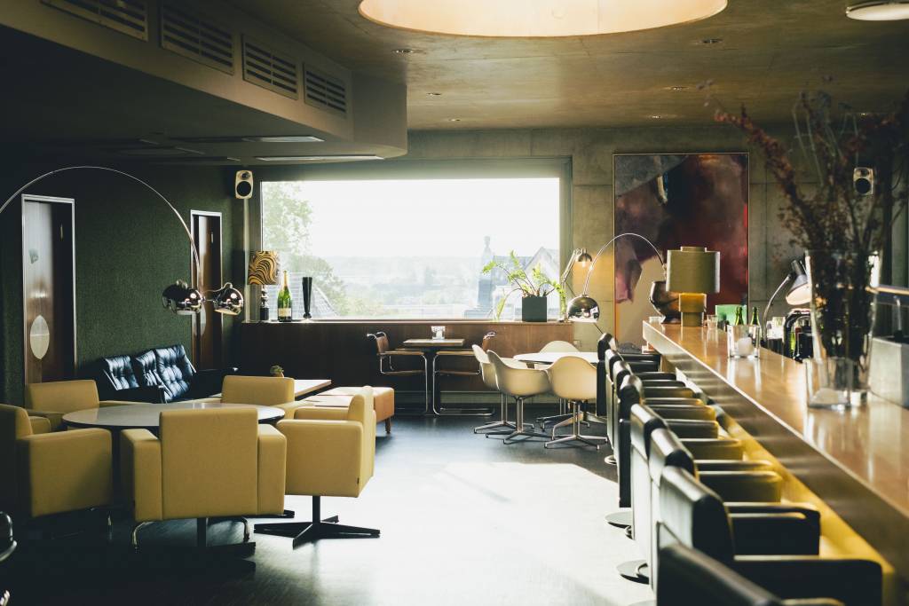 Durch einen Seiteneingang gelangst du mit dem Fahrstuhl nach oben. Dort öffnet sich die Tür direkt am Tresen, dahinter wartet die große Terrasse mit einem der schönsten Blicke über Offenburg. Drinnen ist es gemütlich, schlicht und einladend – ein Platz zum Wohlfühlen.